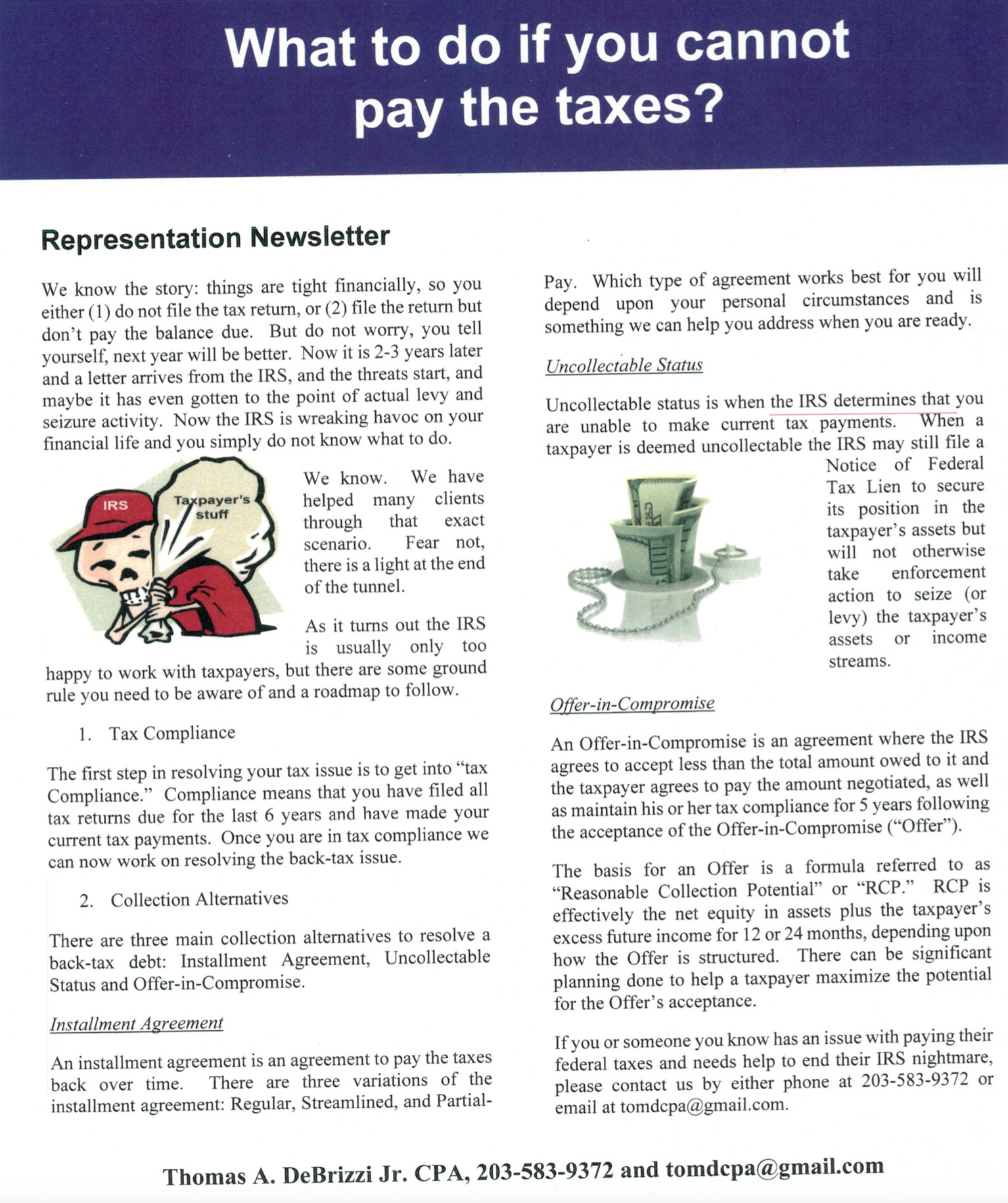 This Web site is made available as a service to our clients and others for informational purposes only. These materials and information should not be considered as, or a substitute for, accounting, tax or financial advice. While it is hoped the materials provided here are helpful as background material, it is not warranted either expressly or implied as accurate or complete. You should refrain in taking any action based upon the information provided here until you have received proper counsel.